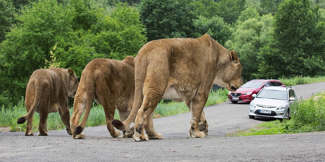 Absolutní raritou v naší republice je safari park. Tam jedete mezi volně se pohybujícími zvířaty. Dostanete se dokonce i do výběhu ke lvům, kde Vám doslova jde mráz po zádech.